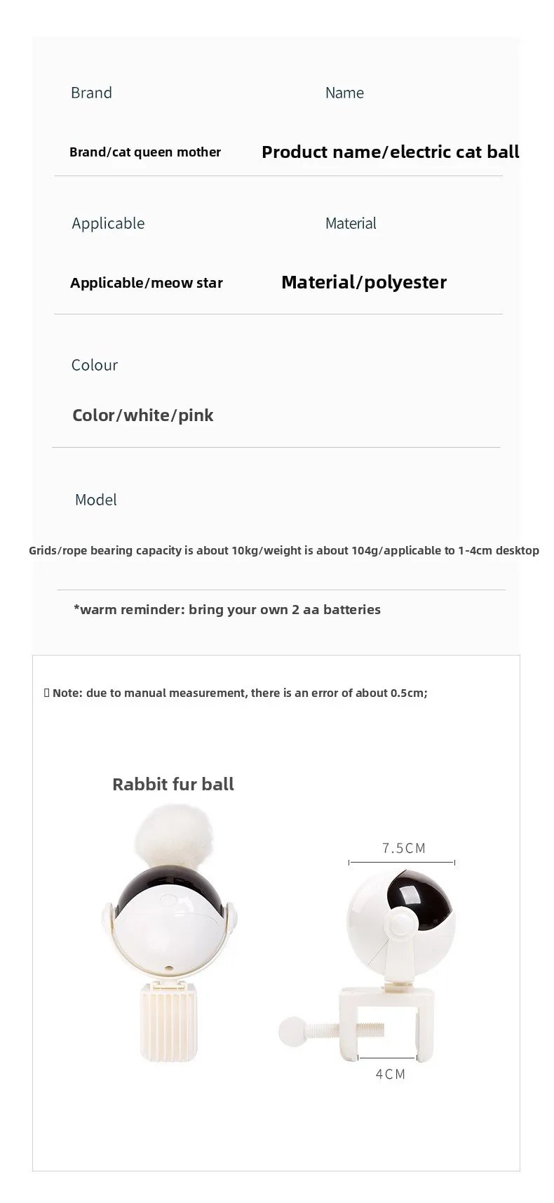 Materials: High-durability ABS plastic, safe pom-pom teaser