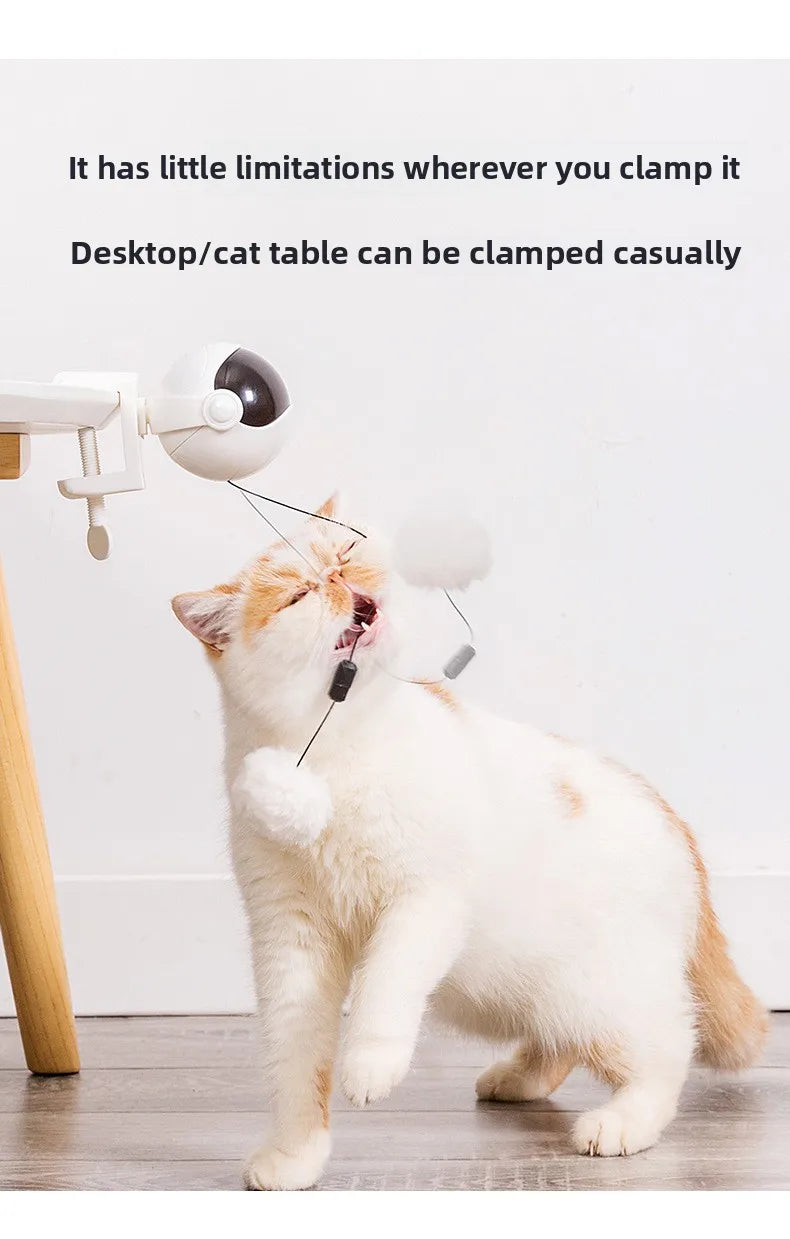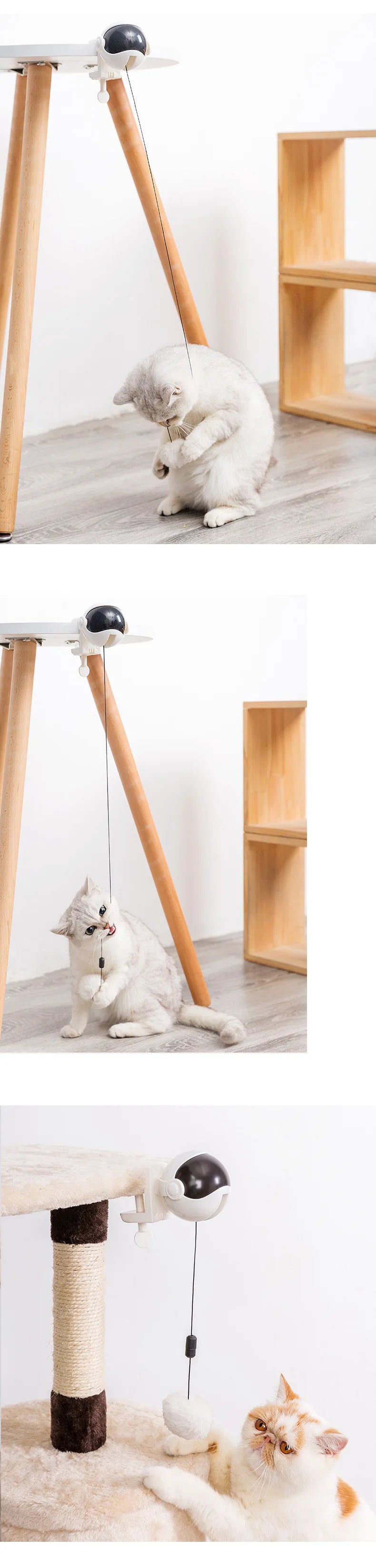 Clamp it onto a sturdy surface for independent play, or detach and hold the teaser string for bonding time.